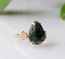商品画像や説明の通りで、素敵なリングでした。氷ひすいの優しい色と、アームは実は仏さまがいるという、個性的なデザインに惹かれました。また、仕上げの艶消し加工が本当に綺麗です。指にスッと馴染み着け心地も良いです。たいへん気に入りました。大切にします。丁寧なご対応もありがとうございました。