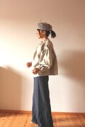 首元と袖口に緩やかなシャーリング、女性らしい優しい印象があり、シンプルでも存