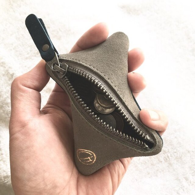 牛スエードファスナー付コインケース バイカラー[グレー×ネイビー]
