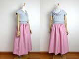 タイルのようなモザイク柄のふくれジャガード生地で、ギャザースカートを仕立てました。