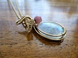 見る角度によって虹色の光が現れるこの石をゴールドフィルドワイヤーで丁寧にしっかりと包みました。