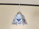Lサイズ・ブルーの三角幾何学模様A(ステンドグラスペンダントライト)吊り下げガラス照明 (コード長さ選択できます)