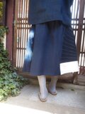 古布リメイク☆刺し子風呂敷とはちはちさんの暈し藍染で大人スカート77㎝丈