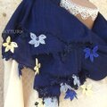 レースのモチーフ付き 大判コットンストール「星/2辺」ミッドナイト