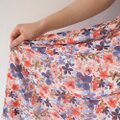 ・オレンジと青色のお花が気持ちを明るくしてくれるます。薄くてやや透け感のある生地ですが、カーディガンやコートを羽織れば春から秋口まで活用できそう。