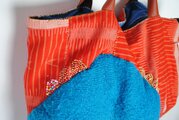 さまざまな種類の生地を使用しています。いくつか色落ちする素材もございます。(革部分など)