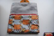 チャック式の小銭入れとその後ろに3層、お札などを入れるポケットがついています。
