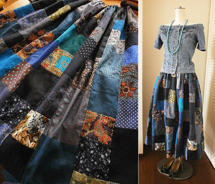 一つひとつ、絵を描くように作ったパッチワークスカートです。