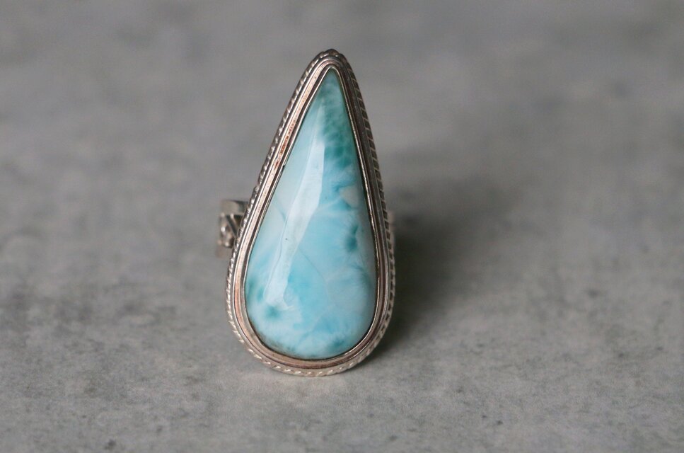 素材…トップは天然ラリマー 指輪部分 スターリングシルバー925 手作り