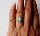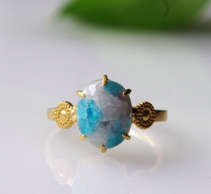 商品画像や説明の通りで、素敵なリングでした。氷ひすいの優しい色と、アームは実は仏さまがいるという、個性的なデザインに惹かれました。また、仕上げの艶消し加工が本当に綺麗です。指にスッと馴染み着け心地も良いです。たいへん気に入りました。大切にします。丁寧なご対応もありがとうございました。