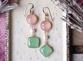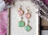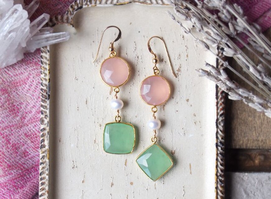 素材:ピンクカルセドニーパール・クリソプレーズ・シルバー(石枠/ゴールドプレート)・K14ゴールドフィルド