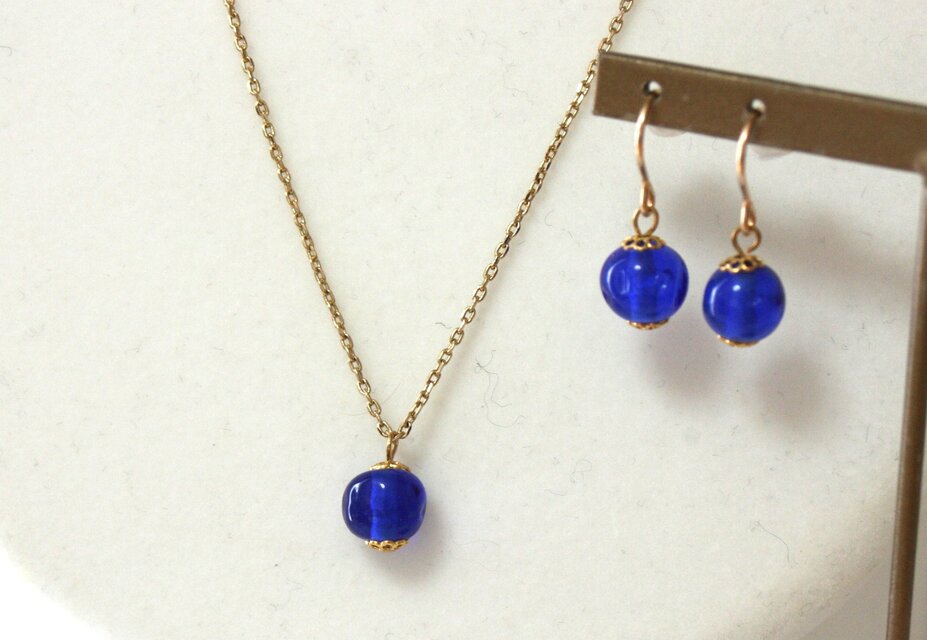 【2点セット】14kgfミリアムハスケルヴィンテージビーズ ペンダント・ピアス
