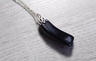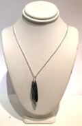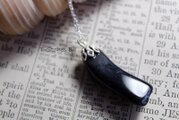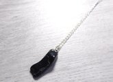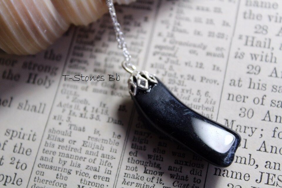 艶のある個性的な形のホークスアイのタンブルにシルバーのパーツを取り付けて、シンプルなネックレスにしました。