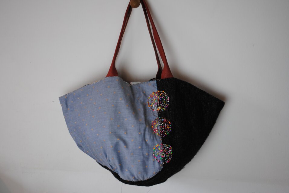 「Randers Tanker」私はデンマークのRanders という所で地元の人たちと共同生活をしていたことがあります。その時、着古して穴のあいた服や靴下を捨てず、大切に繕って使っている人たちを見て、モノを大切にするのはとても気持ちの良い事だなぁと感じました。作品の根源的なアイディア(Tanker)がその土地Randers から生まれたという意味を込めて、ブランド名をつけました。 作品へのこだわりは、ほぼ全ての物を手縫いで作っている事です。作品一つ一つは決して完成されたシルエットの物ではない…