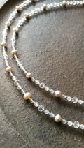 グレー淡水パール、グレーオニキス、フロスト水晶、カットガラス