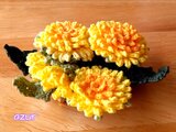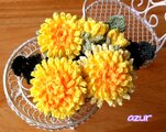 大きさの違う花びらを重ねて、たんぽぽの花を編んでみました