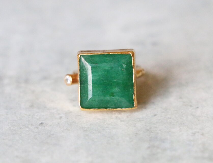 素材…トップは天然エメラルド キュービックジルコニア 指輪部分 スターリングシルバー925(ゴールドプレーテッド) 手作り