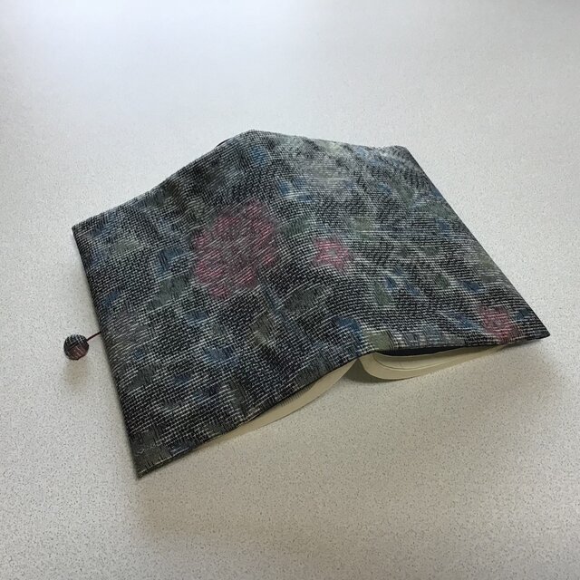 ★ブックカバーには強度を考慮し硬めの接着芯を使用、本の厚みにも対応出来るよう片側はフリー、しおり付きです。