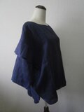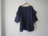 ★en-enフランスリネン・切りっぱなしフレアー付き袖プルオーバー・ネイビー