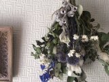 ブルーでシックなスワッグは、ウェルカムスペースにも飾っていただけます
