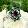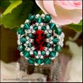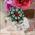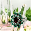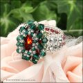 (一点物)煌めきの印象派【スワロフスキー〔エメラルド〕&チェコビーズ〔ライトシャム〕 ビーズリング】《ビーズアクセサリー》