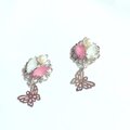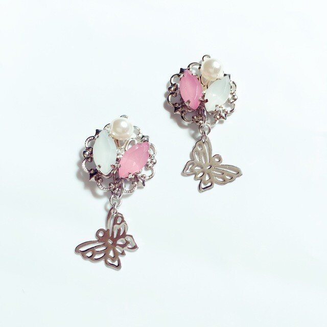 イヤリング/ノンホール/春コーデ/大人ピアス/母の日/春/夏/桃/クリスタル/きらきら/ちょうちょう/バタフライ