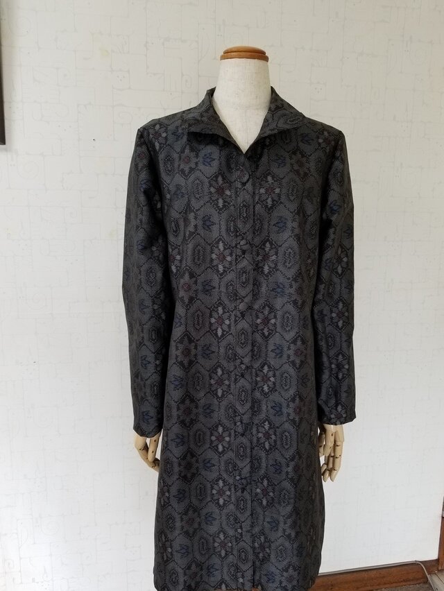亀甲に菊模様織り出し本場大島紬(絹)からコートワンピースを作りました。