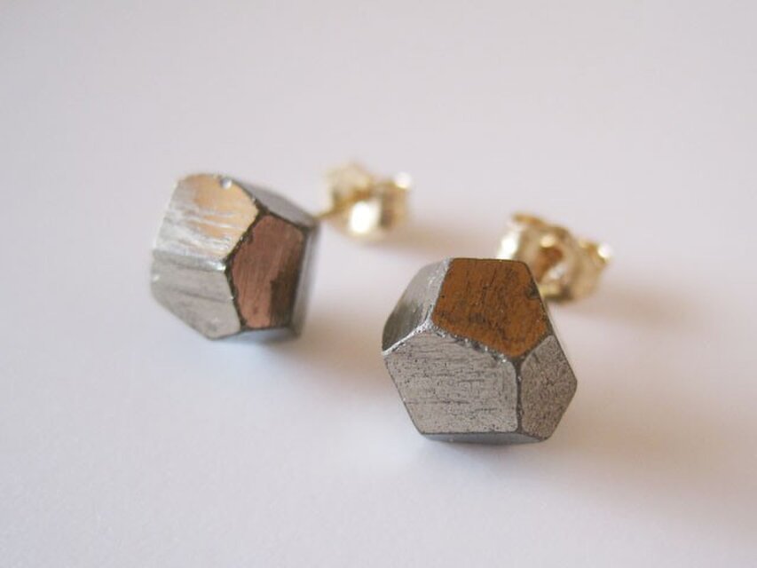 歪な多面体がナチュラルな印象で、角度によってキラリと輝く金属光沢が素敵です。