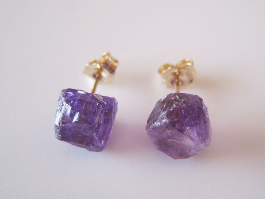 ブラジル産アメジストの原石ピアスです。