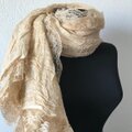 刺繍レース付き 大判オーガニックコットンストール ベージュ