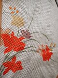 絞りならではの肌触りと質感、また絞りの中に描かれた鮮やかな橙色の華ががとても素敵な一品です。