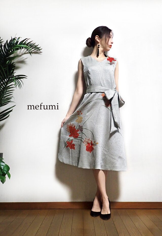 ✳︎1点物 ✳︎ アンティーク 着物リメイク 絞り花柄 フォーマルワンピース ✳︎ サイズ 9号