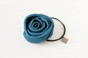 サテンの光沢が美しいローズコサージュのヘアゴムです。少し紗がかかったような風合いに人気のブルーグリーンのサテン生地を使用しています。やわらかいフォルムは束ねたヘアスタイルにやさしい雰囲気を作ります。