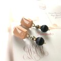 上品なミルクティーベージュの大ぶりスクエアとブラックボンボンに