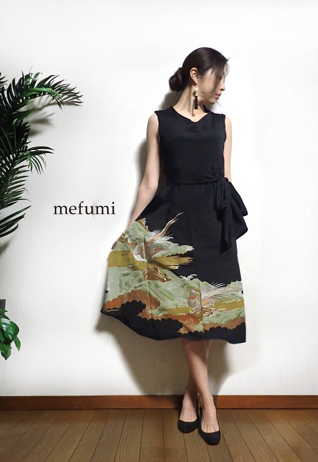 受注制作 ✳︎1点物 ✳︎ アンティーク 着物リメイク 雉 フォーマルワンピース ✳︎ サイズ 9号/11号/13号