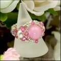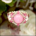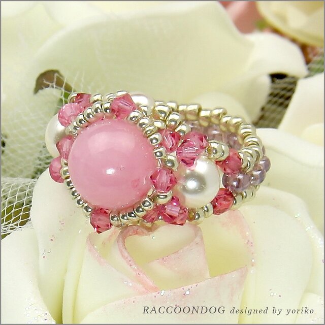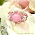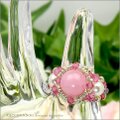 大粒のカルセドニーのピンク色が、とっても愛らしい可愛いビーズリング作品です。