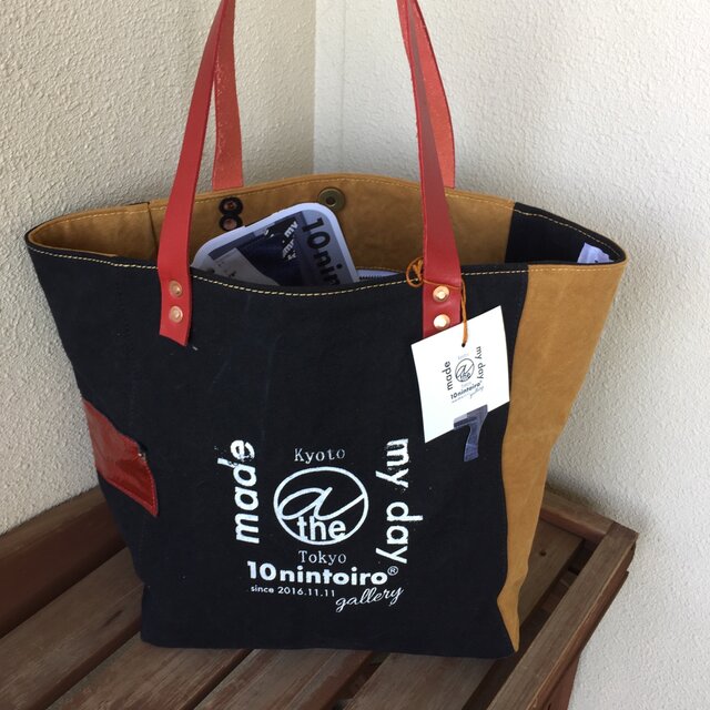 gallery■アルバートン生地&modaトートMサイズ☆赤革#g55ブラック