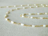 ライスと呼ばれております細長い淡水真珠と細長い14KGF製のリング。この共通のデザインが交互に織りなす様子はシンプルで美しいネックレスを生み出しました。2連としてもお使いいただけます。