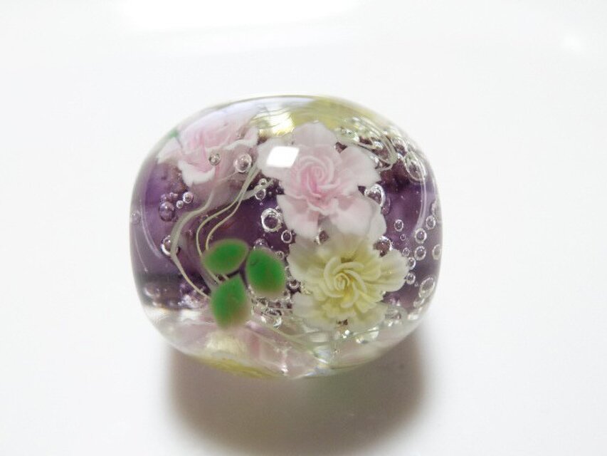 バーナーワークの技法で制作した、手作りのとんぼ玉です。