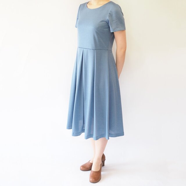 ┗ポケットやファスナー、ボタンなど余計な装飾を一切はぶき、シンプルを極めたワンピースです。その分小物やアクセサリー、着る人を引き立てます。