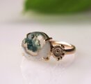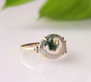 ローズカットがほどこされたモスアゲートのK10製リングです。