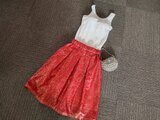 ★キラキラのインドサリーで、パーティにピッタリの真っ赤なギャザースカートを!★