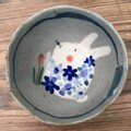 再出品・小さいご飯茶碗「青い花うさぎ」