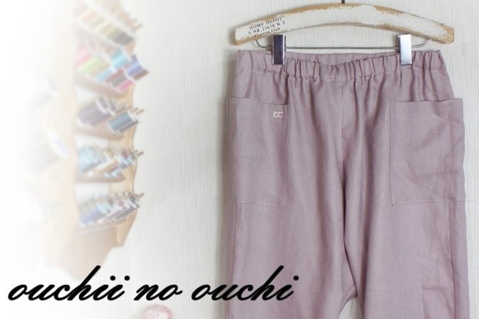 しっとりリネン100アンティークモーブでサルエルパンツをお作りました。