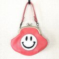 かわいいピンクレザーのがま口バッグです。ぷっくりのニコちゃんがとっても目立ちますよ(^-^)