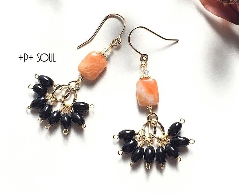 110117 オレンジ ブラック 女子会 ランチ プレゼント パーティ お仕事 ギフト お守り オニキス カルサイト 大人女子 フリンジ ギフトラッピング ご褒美 記念日