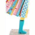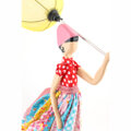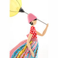 風に吹かれて、スカートがなびき、カラフルな傘がひっくり返ってしまったユーモアあふれるおしゃれなリトルガールランプ♪