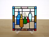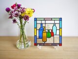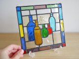 カラフルなボトル モチーフのステンドグラス ミニパネルです。