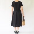┗ポケットやファスナー、ボタンなど余計な装飾を一切はぶき、シンプルを極めたワンピースです。その分小物やアクセサリー、着る人を引き立てます。