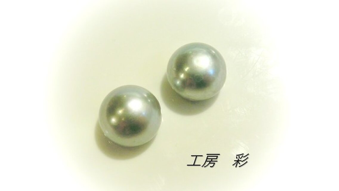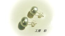AAAランク・ボタン型シルバーグレー淡水パールのボリュームピアス・イヤリング です。